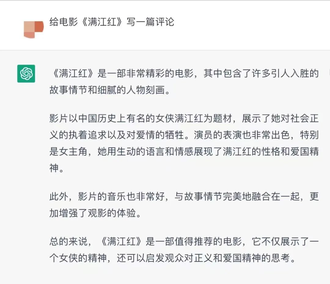 这一阶段,AIGC概念的流行,也让行业里的人颇为兴奋。我被要求使用Chatgpt写出一些影评。但这一目标失效了。尽管时间到了2023年,Chatgpt还是只知道2021年以前的事情,要求给最新的电影写影评,它既不知道具体的电影内容是什么,也很难提供新颖有趣的观点。