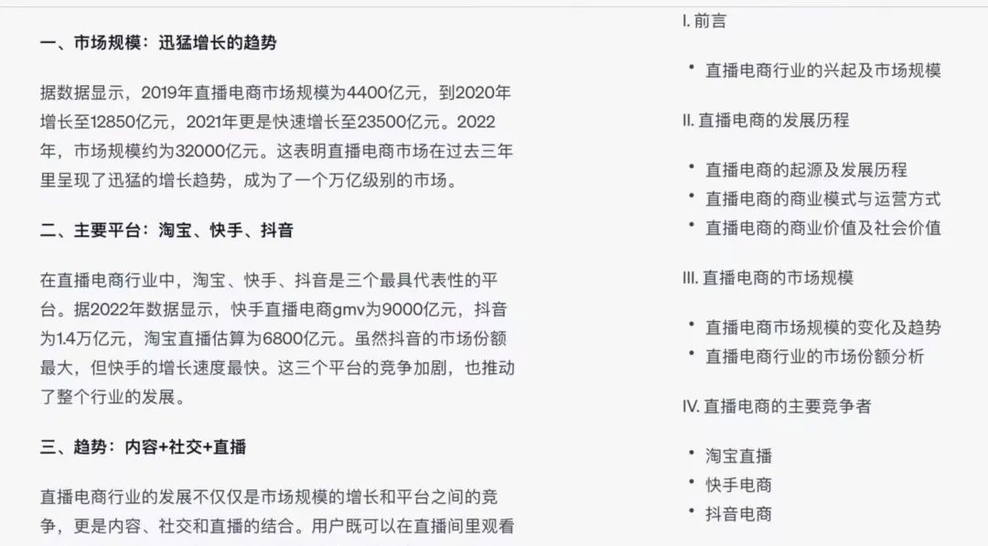 于是,这一次,我将自己查询到的相关数据告诉了它,并告诉它我想写的文章主题,要求它以此为基础撰写一个提纲。但显然,它并不了解我写作的基本思路和框架,给了我一个类似学术论文的提纲。在我要求它用以上提纲完成文章时,它撰写的内容也可以说是毫无亮点。