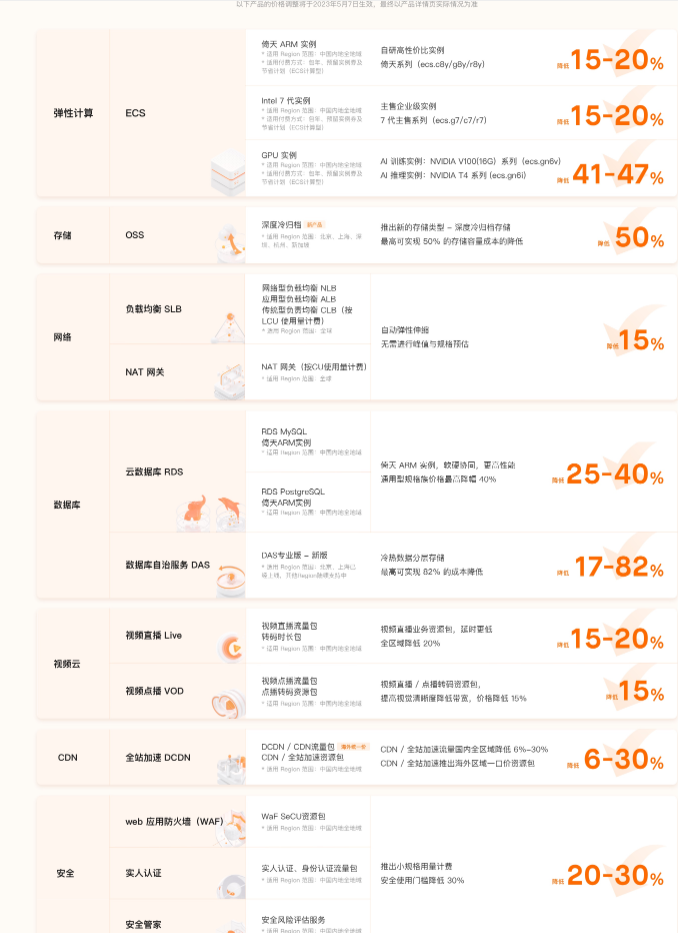 4月26日,在2023阿里云合作伙伴大会上,阿里云宣布计算、存储、数据库等多项云计算服务价格下调15%至50%。