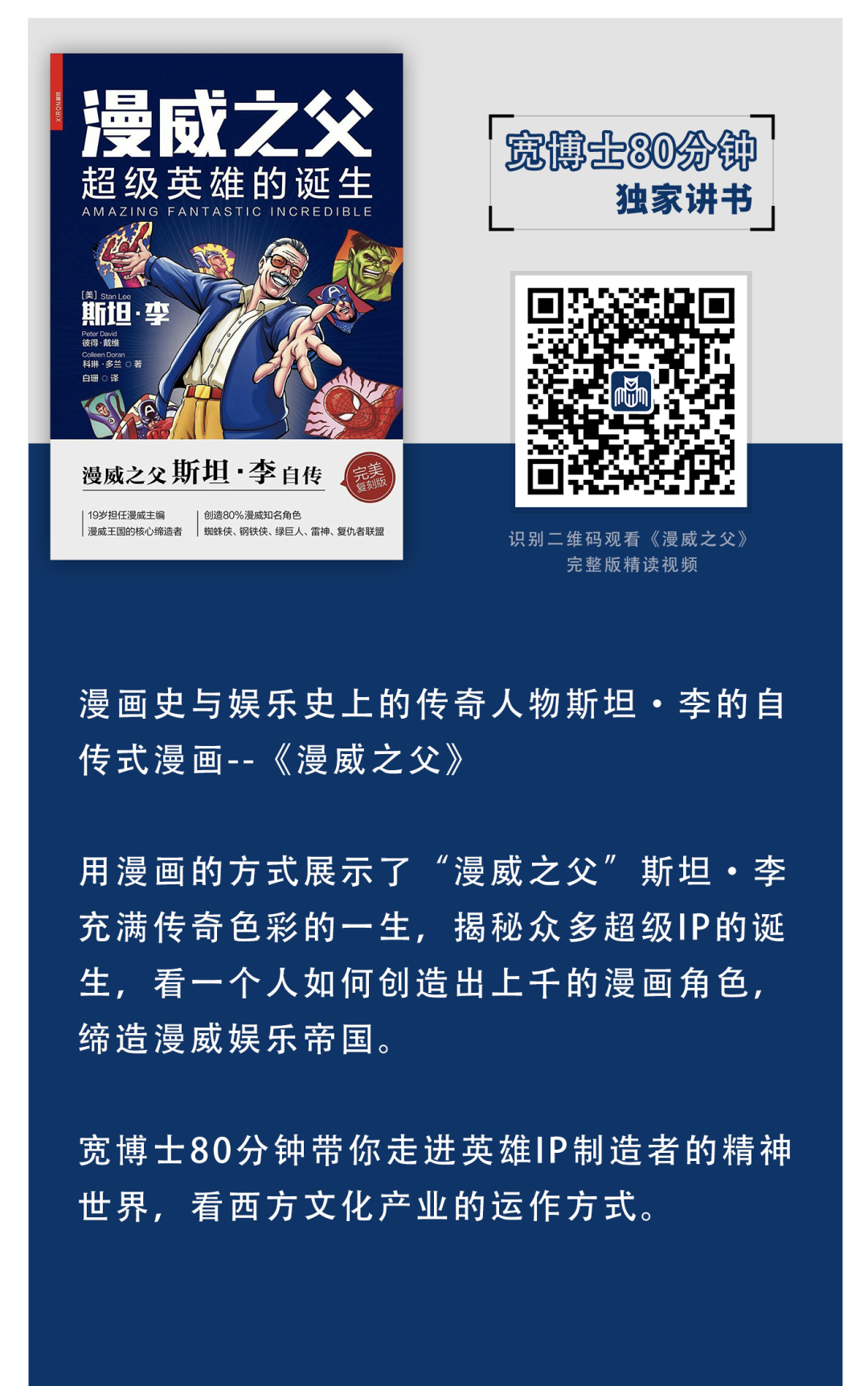 点击加入「宽博士书友会」,观看《漫威之父》完整版精读视频,看超级英雄缔造者的传奇故事。