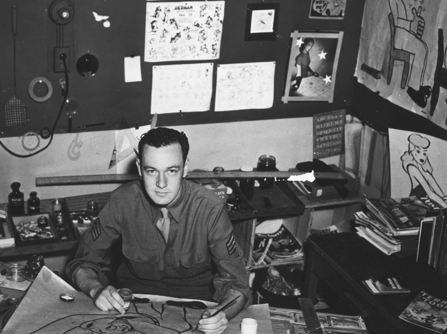 1941年,斯坦·李的第一部作品问世,《美国队长》系列漫画的第三部,也正是这一年,因为公司出现人事变动,19岁的斯坦·李被任命为临时总编,但由于《美国队长》的故事过于虚构,为了寻找灵感,给漫画勾勒出真实的战场,斯坦·李放下了工作,应征入伍,当了一名美国陆军。