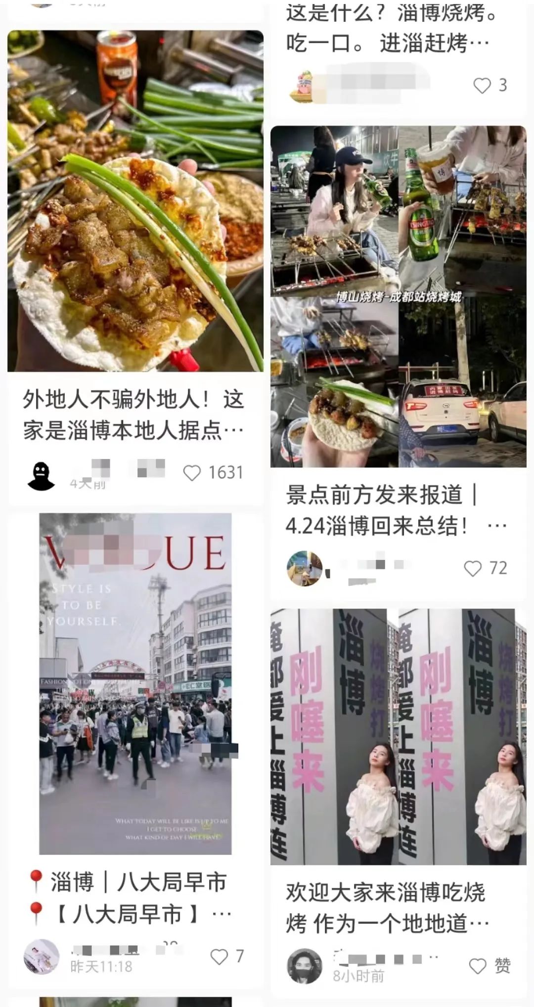 △淄博旅游在各个社交平台刷屏。/小红书截图