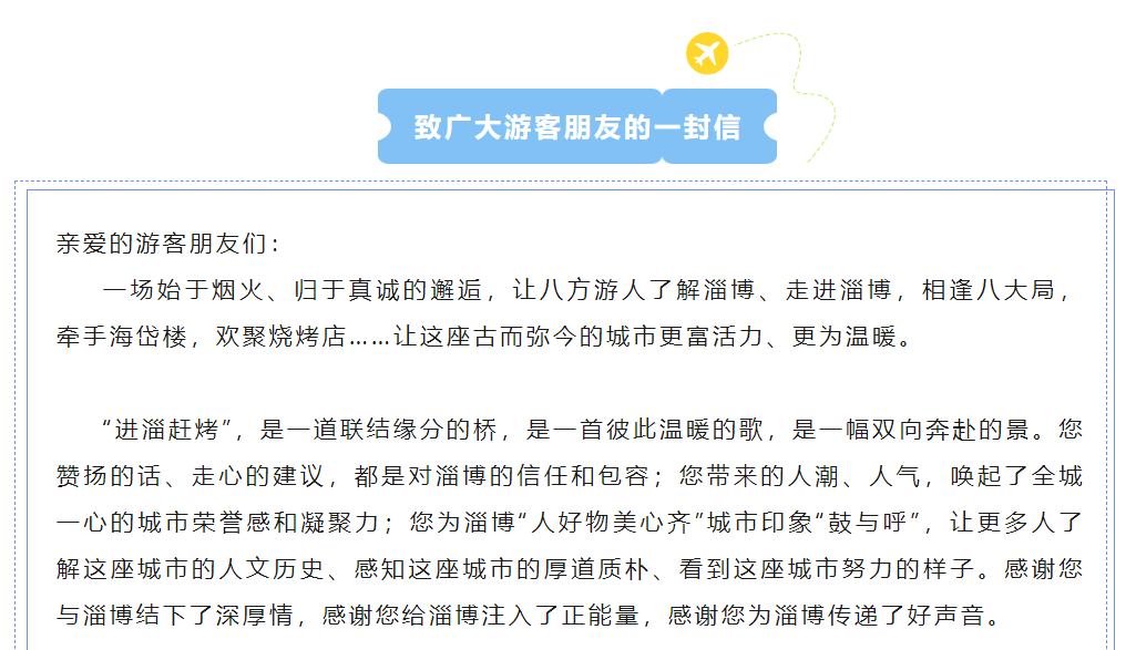 正打算前往淄博的网友们看完这封信,心底里冒出的第一个词,应该都是“大气”。