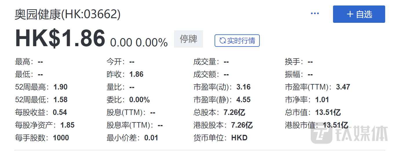 2022年4月1日,奥园健康因无法在规定时间内披露2021年年报,而被港交所勒令停牌,而后又因无法按时披露2022年中报、2022年年报,导致公司股票停牌至今。