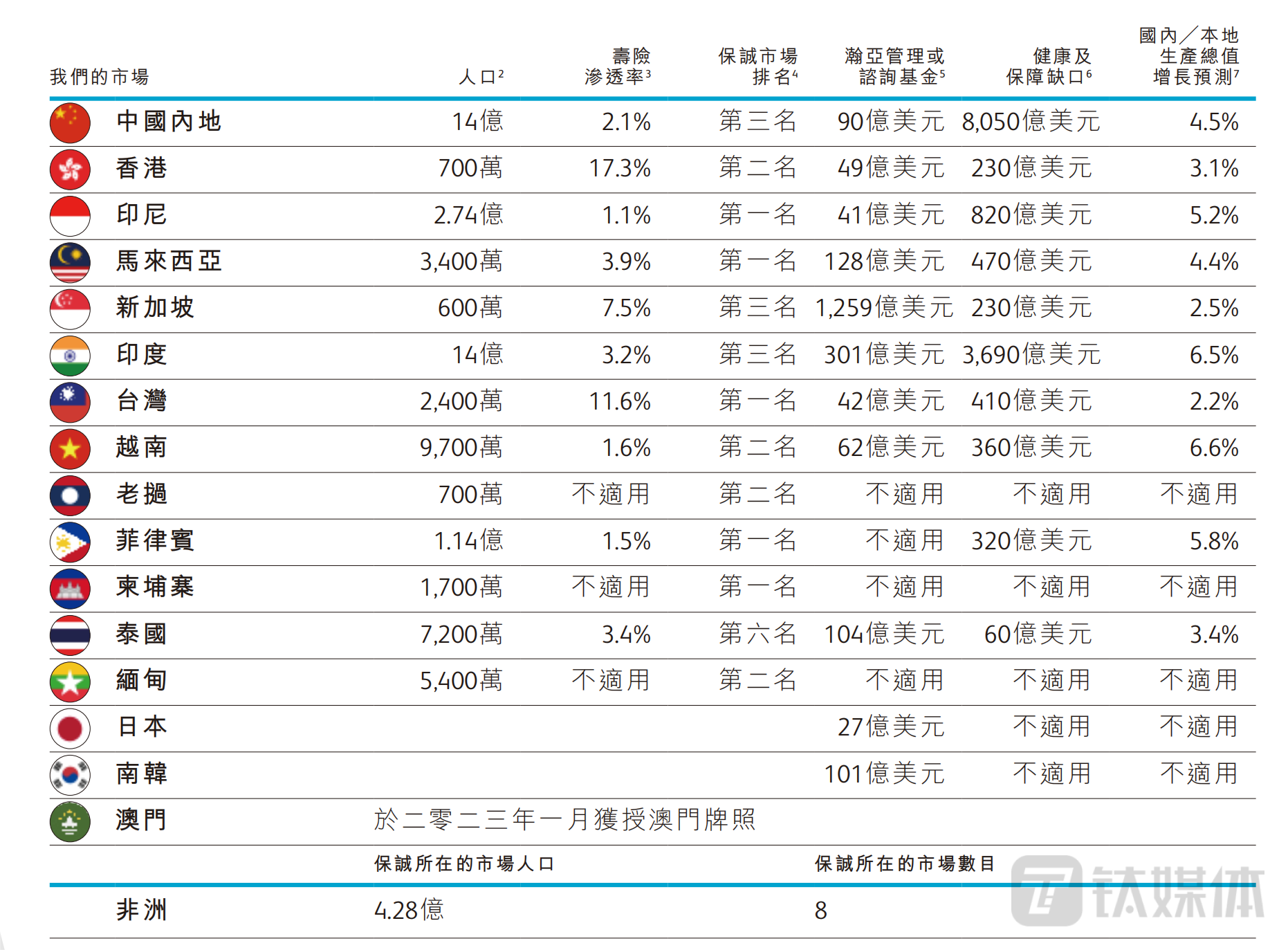 上述公告还指出,报告期内,公司于亚洲13个寿险市场当中的10个以及非洲均录得新业务利润双位数增长。其中,香港新业务利润约2.93亿美元,同比大增106%;年度保费等值销售额约4.55亿美元,增幅达299%。