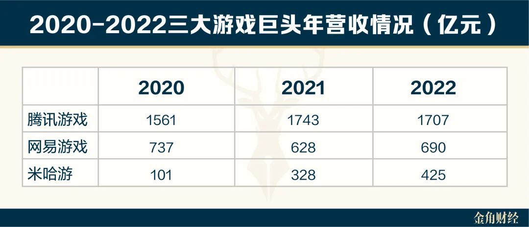 随着《崩坏》系列带来的正向反馈,以及《原神》的风靡全球,米哈游在资金上获得了丰厚的回报,逐步成长为国内游戏的巨头。从营收规模看,2022年米哈游的营收达到425亿元,已经对腾讯、网易构成了一定威胁。。
