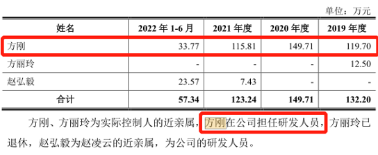 令人意想不到的是,报告期内,联芸科技的研发人员方刚(公司实控人方小玲的近亲属)的年薪分别为119.7万元、149.71万元、115.81万元、33.77万元。
