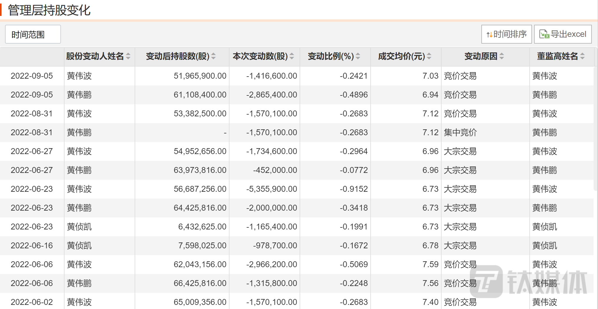 赚钱能力虽然不行,但是套现能力不赖。西陇科学,其实控人乃黄氏家族,包括黄伟波、黄伟鹏、黄少群、黄侦凯、黄侦杰,其中黄伟波、黄伟鹏、黄少群系兄弟关系,黄侦凯、黄侦杰系黄伟波之子。2022年以来,黄氏家族多次减持西陇科学股份,据据choice数据,去年重要股东交易减持均价约为7.36元,共减持约0.6399亿股(约占当前流通股本的0.1094%),减持金额累计约4.711亿元。