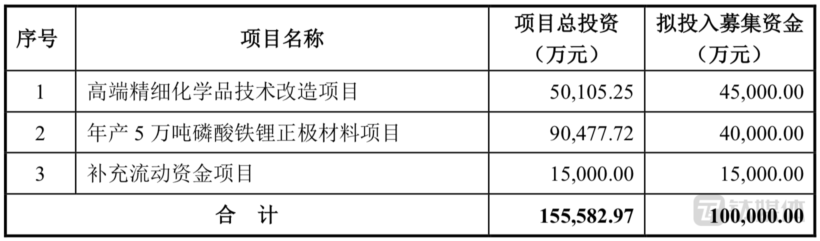 2022年8月14日晚间,西陇科学抛出定增预案,拟非公开发行不超过1.76亿股,募资总额不超过10亿元,发行对象为不超过35名的特定投资者,于2022年11月底实施完毕。西陇科学计划将这10亿元用于投资高端精细化学品技术改造项目、年产5万吨磷酸铁锂正极材料项目以及补充流动资金。
