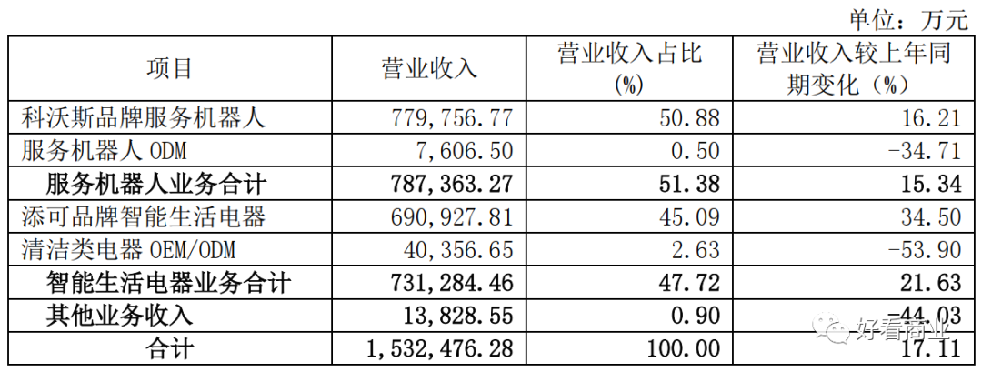 科沃斯的“双轮”在营收贡献上不相上下,但奔跑速度却差别巨大,甚至出现此消彼长的局面。