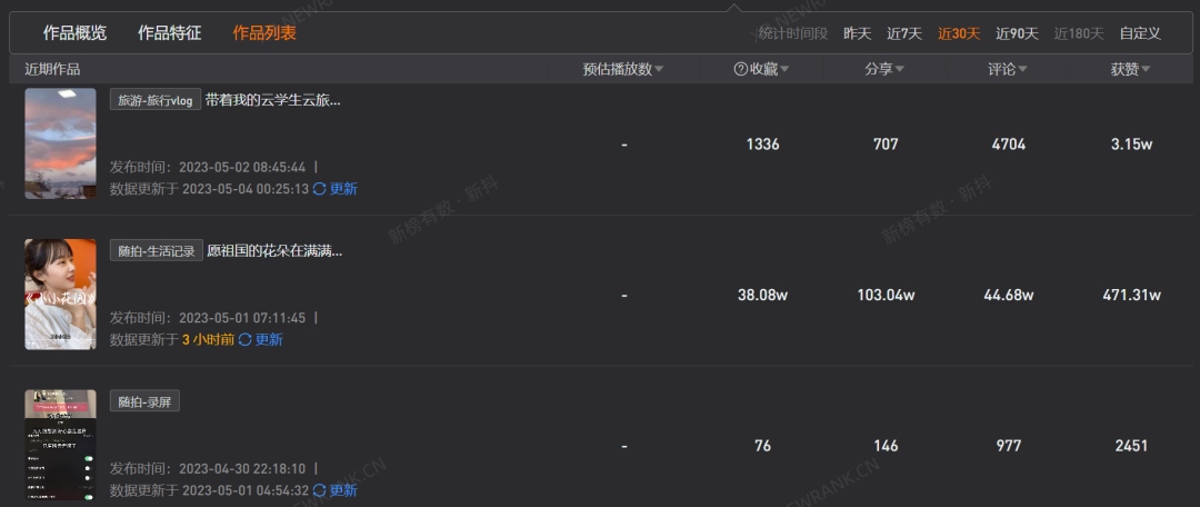 账号更新时间停留在5月2日