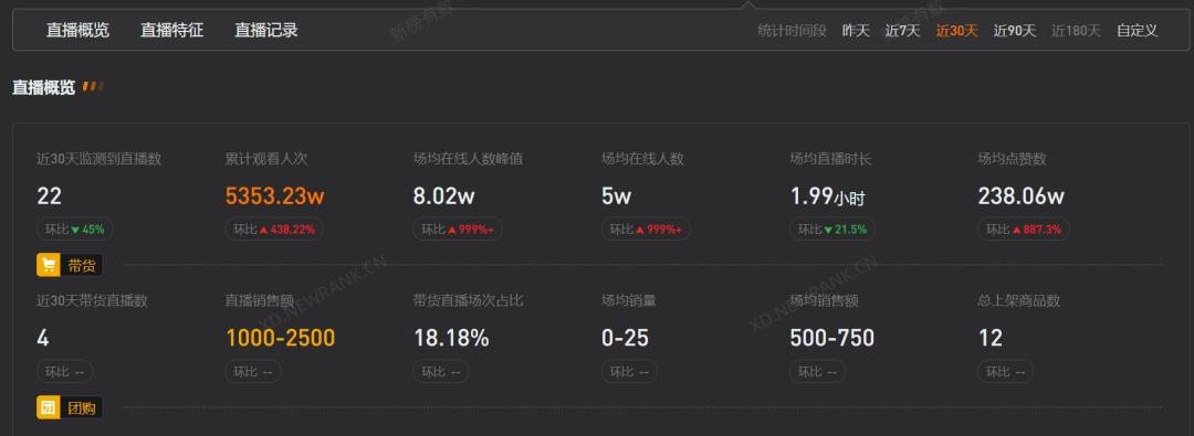 黄老师近期直播间流量情况 截图来自新抖