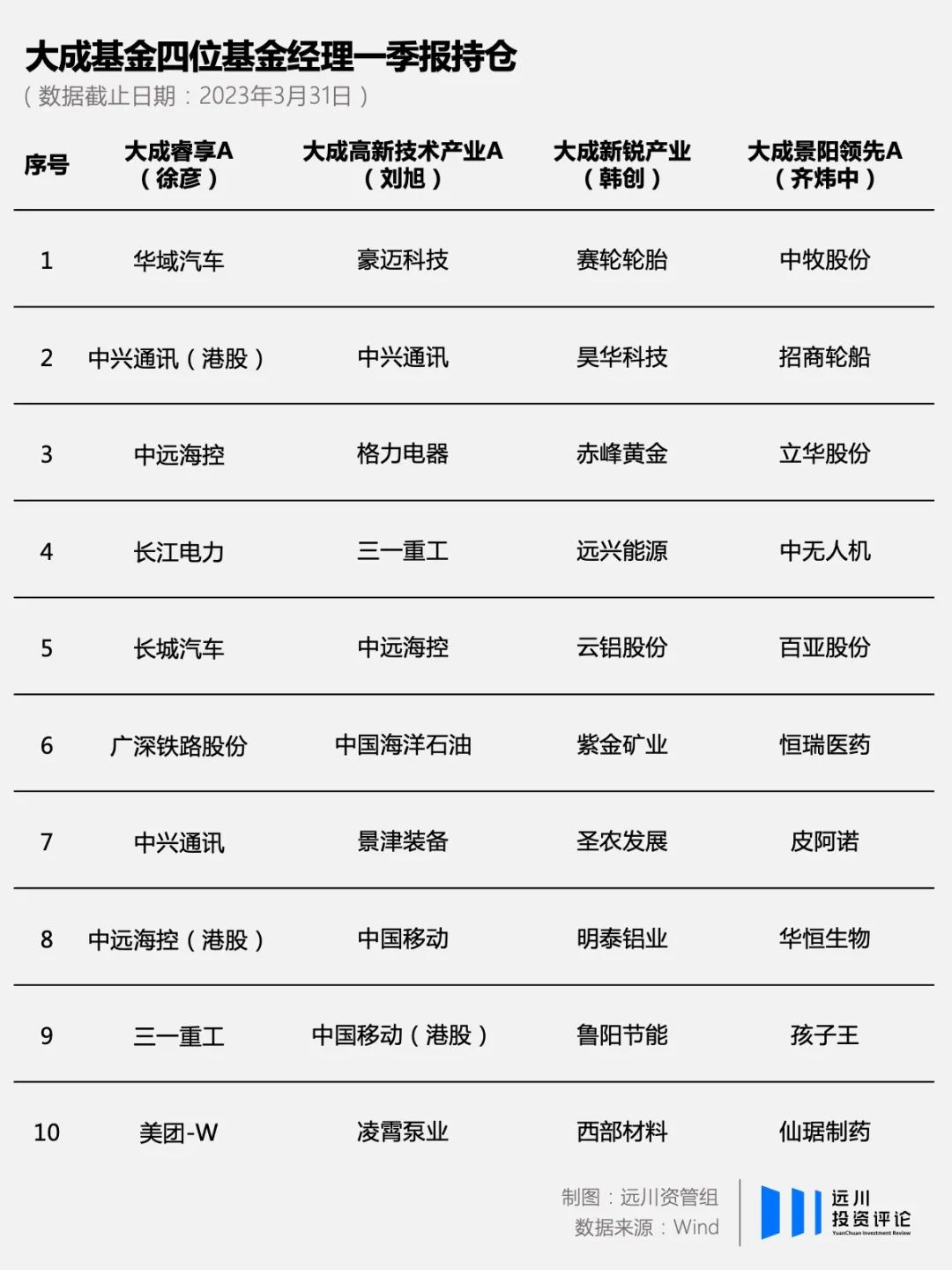 比如接替徐彦管理大成景阳的齐炜中,前十大持仓时常出现4只消费股,半数都是非主流消费品,尤其喜欢黄羽鸡这种偏周期的消费机会;同样把徐彦称作导师的刘旭,聊起冷链和泵业来头头是道,2022年中报显示他买入了中远海控,只不过与雪球水手们操作相反,他买的不是行业景气度的爆发。