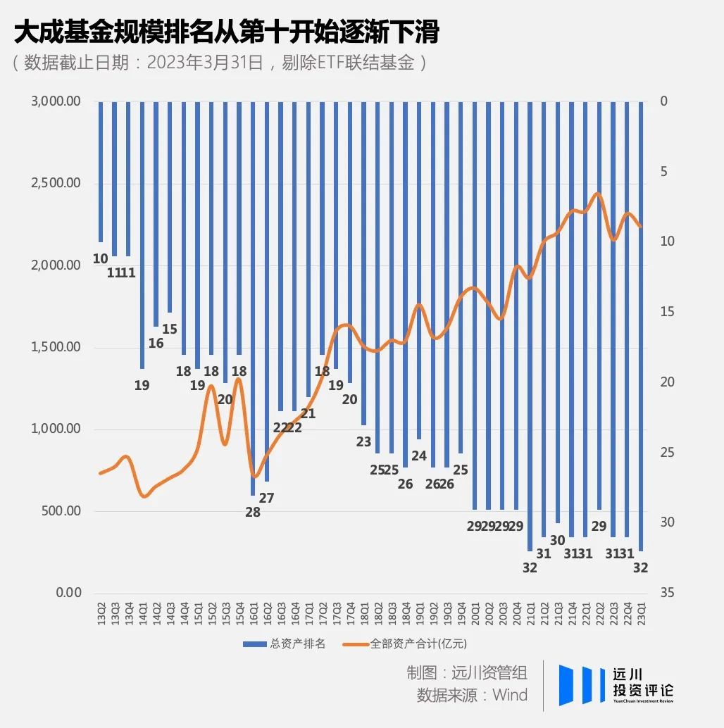 本来寄予厚望,反倒成了累赘。眼看易方达、广发等同行抓住了时代机遇,在规模上狂飙猛进,大成基金自己却不断掉队,逐渐冲向「老十家」的末尾。