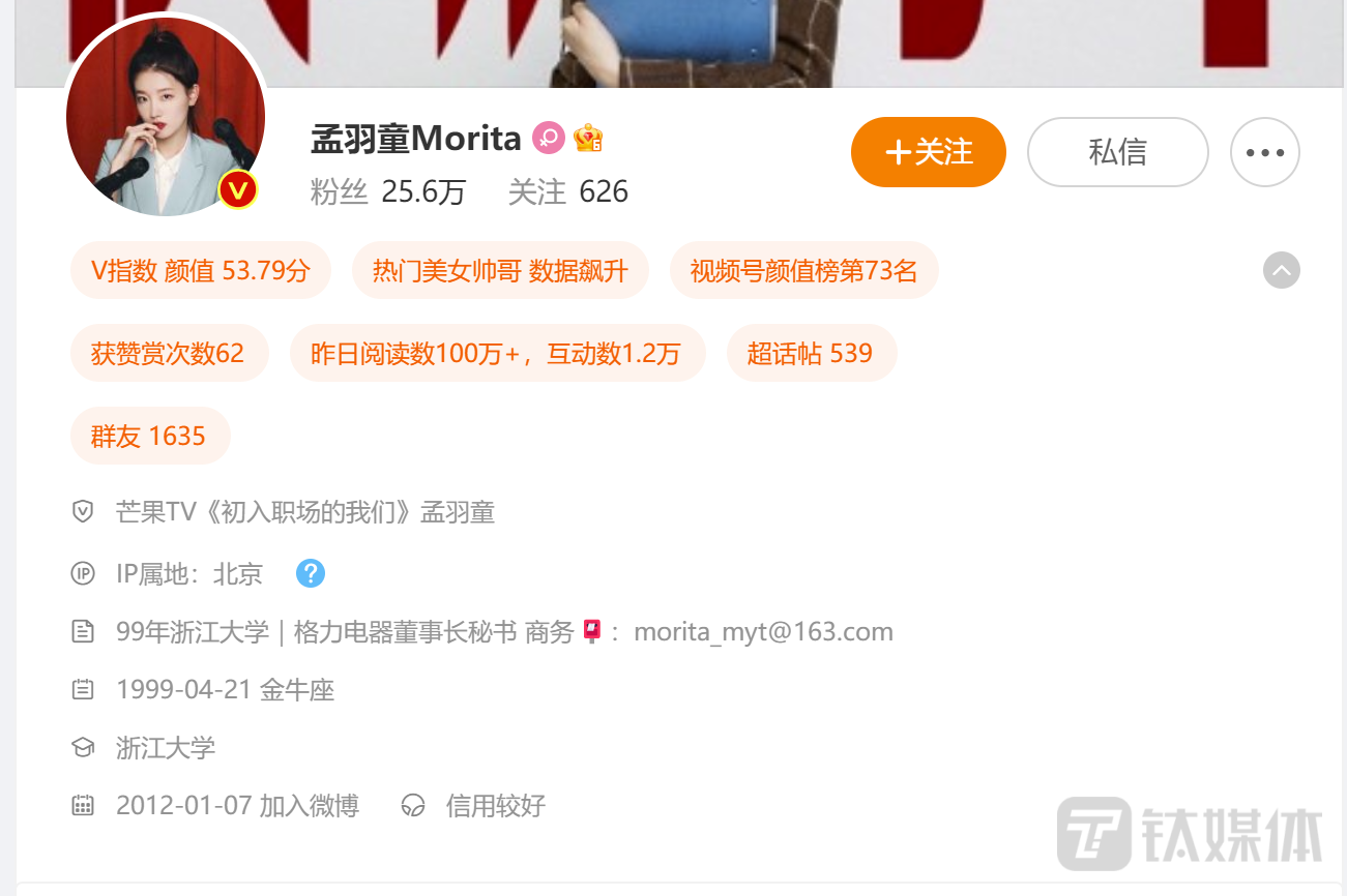 钛媒体APP发现,自孟羽童加入格力电器后,公司开通多个平台账号,包括“明珠羽童精选”、“明珠羽童空调直播间”、“明珠羽童冰洗直播间”。孟羽童的职位慢慢从秘书转变到了主播,不过孟羽童及格力电器方面均为对此做过回应。