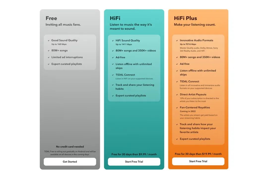 免费套餐的副作用最明显的例子是Tidal。2021年3月,在被金融公司Block收购后,Tidal也在定价策略上做过不少尝试,其中之一就是在2021年11月破天荒推出免费套餐。
