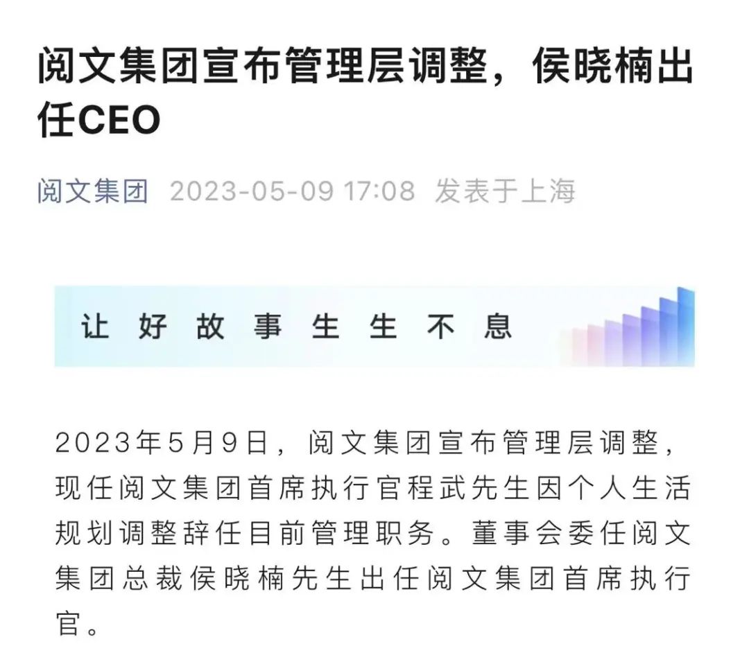 就在官宣开机前一天,5月9日晚间,阅文集团发布公告称,阅文集团 CEO 程武“因个人生活规划调整辞任目前管理职务”。