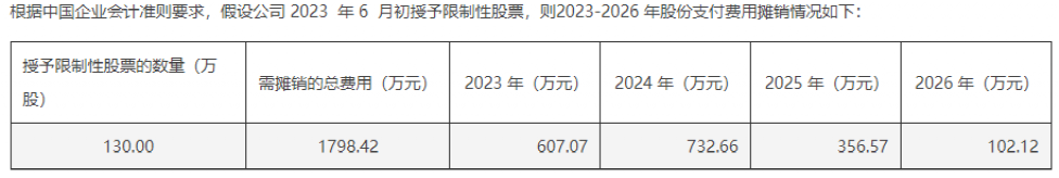 而这还没有考虑此次股权激励产生的费用,从草案来看,股权激励一共将产生约1800万元的管理费用需要在后续四个年度摊销。其中2023年和2024年摊销额较大,如果以考核净利润“目标B”为参照,该两个年度的摊销费用约占到净利润的12%左右。