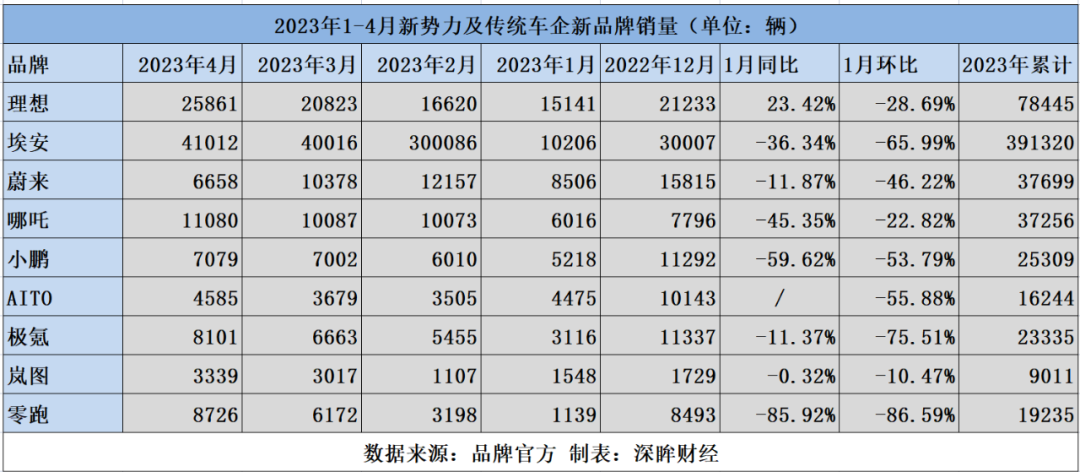 可以看到,广汽埃安、吉利极氪、东风岚图等品牌交付都在大幅增长,极氪4月销量同比增长达279.1%,岚图4月销量同比增长210%。