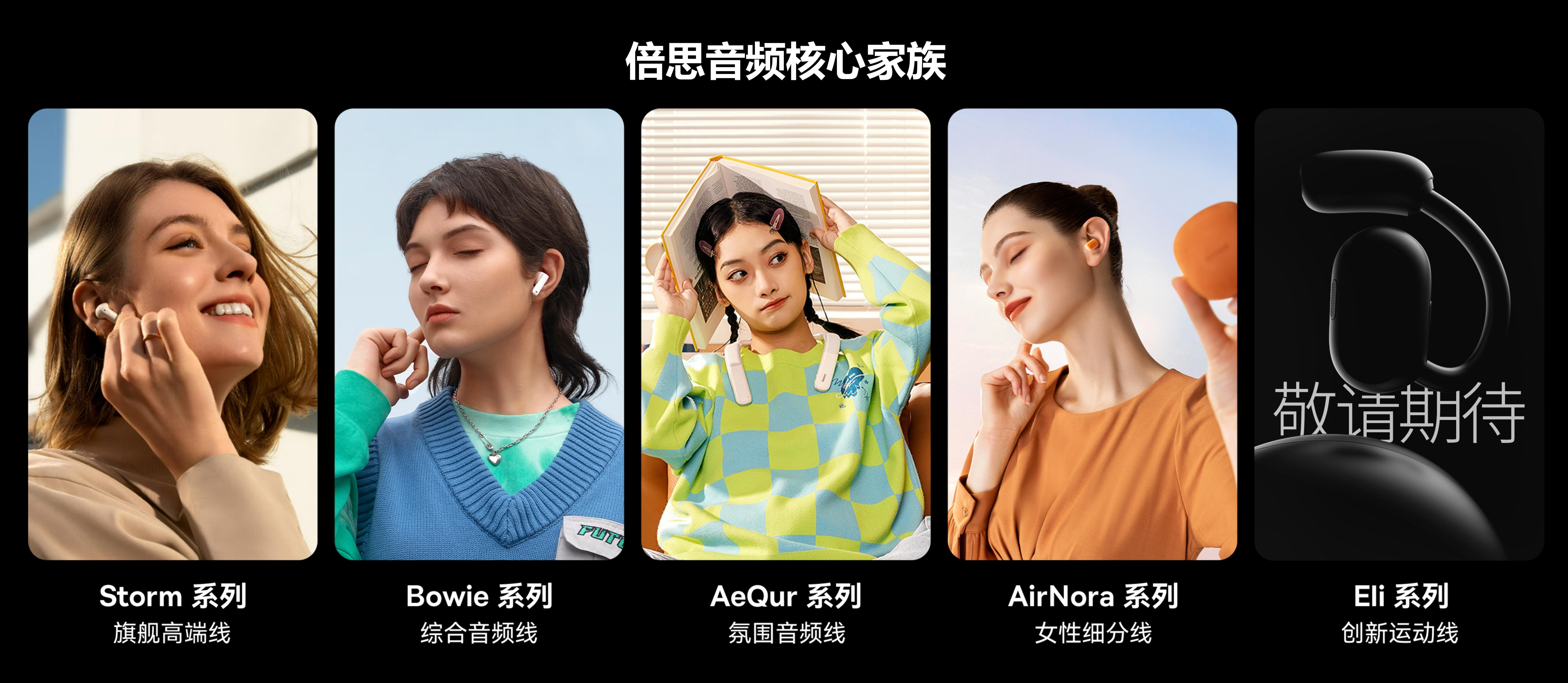 截至目前,Baseus倍思旗下核心音频产品线包含5个系列:Storm、Bowie、AeQur、AirNora和Eli。