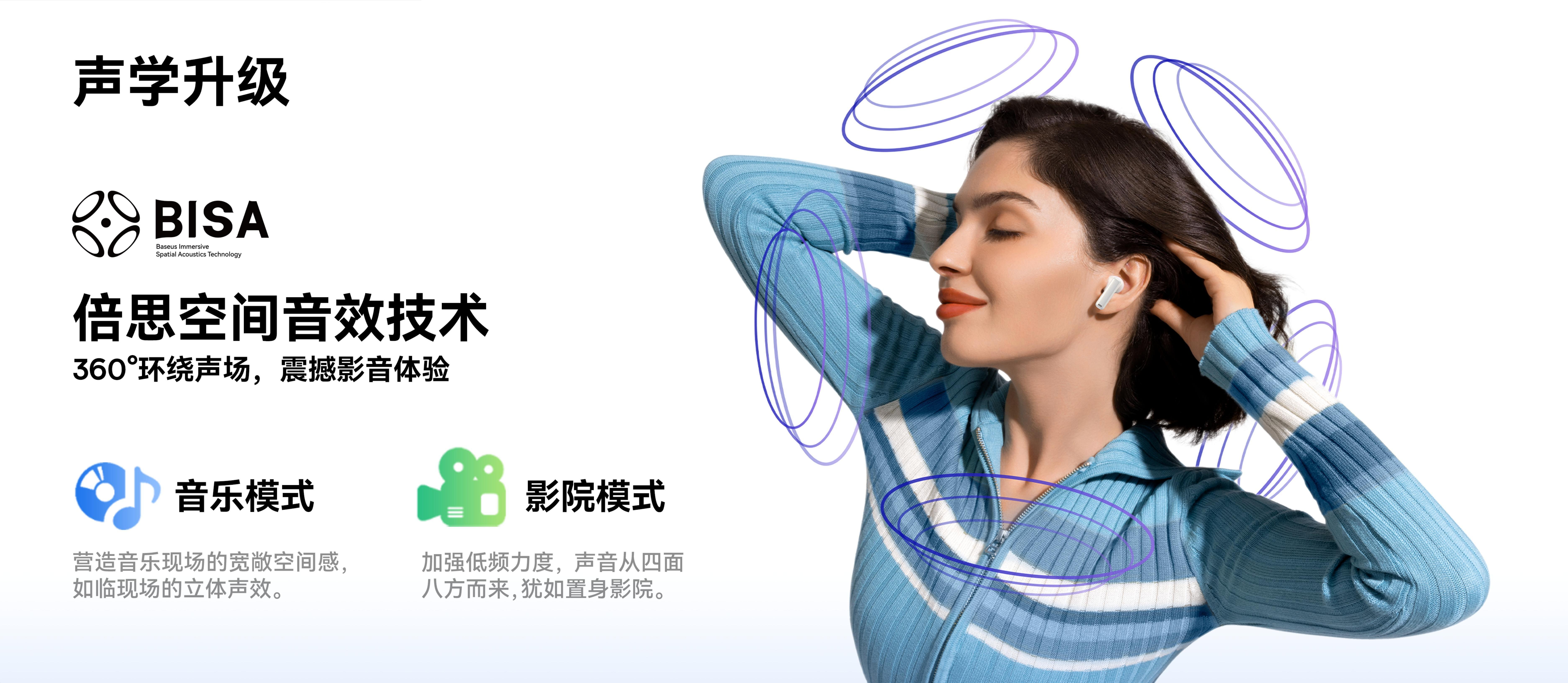 声学方面,BowieM2s搭载了与WANOS全景声联合研发的BISA倍思空间音效技术,内置音乐与影院两大模式。并且通过了Hi-Res wireless认证,支持LHDC编解码格式,可以实现96kHz/24bit规格的无损音频重放,产品降噪深度达-48dB,降噪频宽最高可达4000Hz,产品售价为299元。