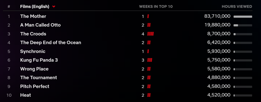 有意思的是,在数据更加具体易得之后,流媒体分配利益的方式,反而不像电视台时代那么透明了。电视台时代的收视数据公开程度很高,而流媒体平台的数据几乎都是封闭的。奈飞会在前10名页面显示其最受欢迎节目的观看时数,这已经比亚马逊、苹果等其他流媒体的数据更多了。
