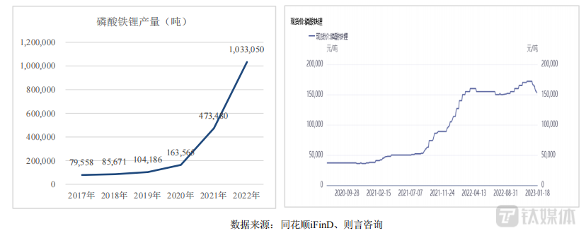 中长期来看,磷酸铁、磷酸铁锂的未来市场空间仍受看好。“我们认为磷酸铁锂、磷酸铁是有市场需求的,这点不用怀疑,基于下游动力电池、储能市场的蓬勃发展,(未来)需求是现在规模的数倍以上。”毛飞对钛媒体APP等表示。