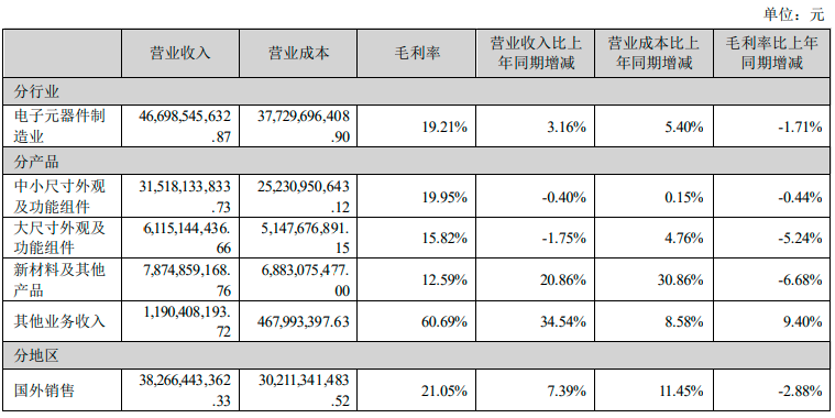 翻看蓝思科技过2022年财报,我们可以看到,最有可能用于汽车的“大尺寸外观及功能组件”这项业务的毛利率只有15.82%,仅高于“新材料及其他产品”,处于倒数第二的位置。