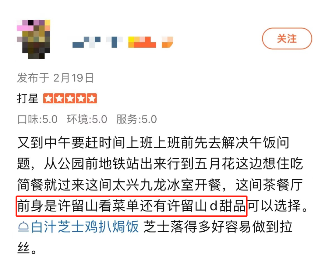 红餐网近期到达广州五月花商业广场店时发现,原许留山门店的位置已经替换成了一家名为“新概念九龙冰室”的店。在这家新店的评论区,还能看出许留山曾经存在过的痕迹,不少到店用餐的顾客都会用“以前许留山的位置”作为门店引路标准。
