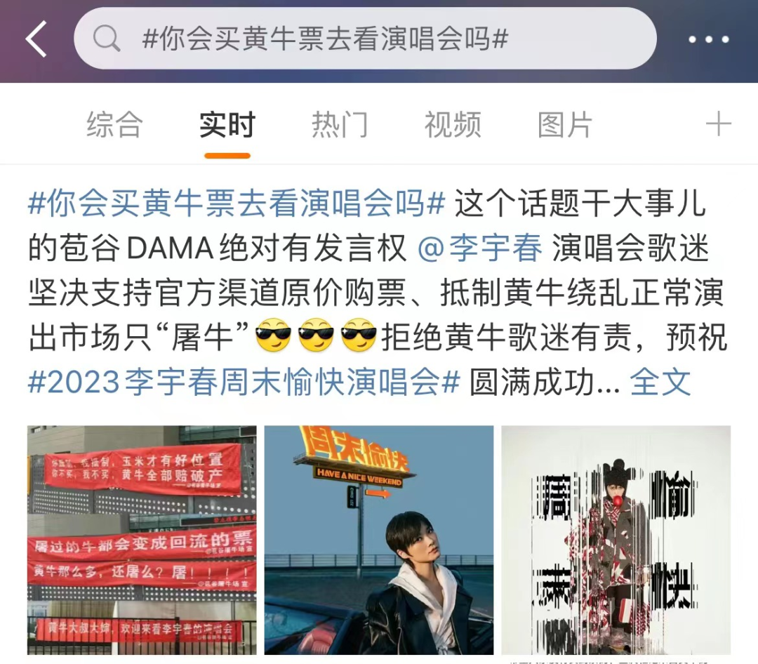 但粉丝对于黄牛的反抗情绪又十分高涨。5月20日开唱的李宇春演唱会,粉丝甚至收集到了所有黄牛在卖的座位,将其公布在超话中,以此告诫同担:禁止购买黄牛票。小娱了解到,不少黄牛最终是降价卖出了所谓的内部票,1680价位的内场,最终成交价格大约在1000元上下。