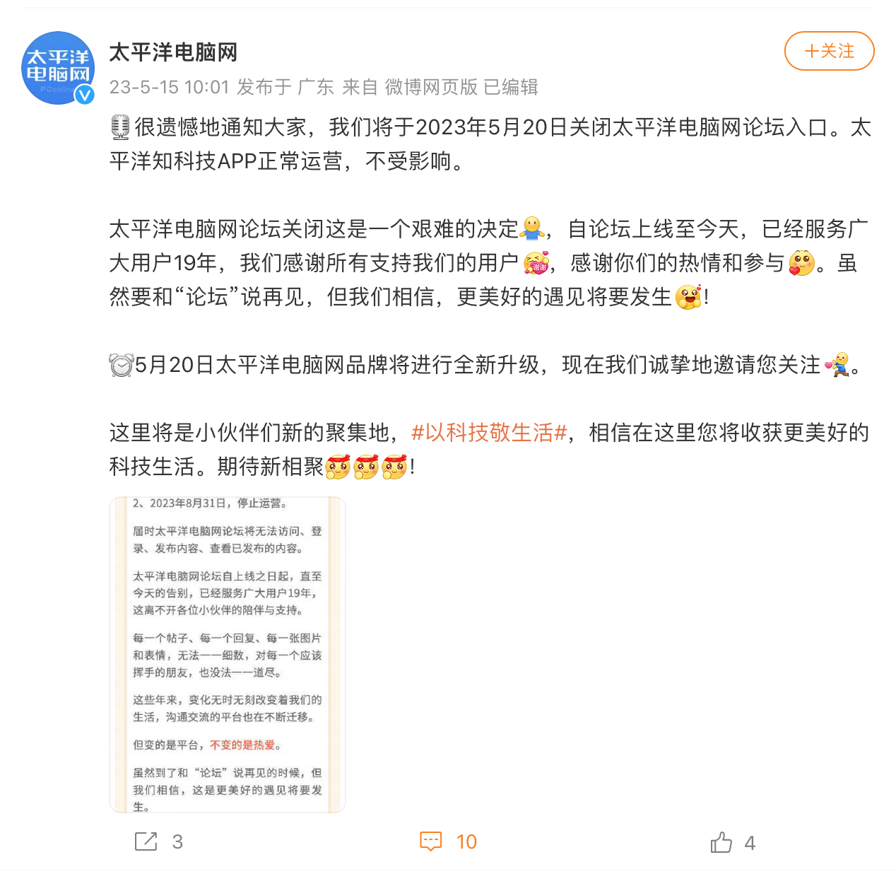 但谁也没想到,就在今天太平洋电脑网官方表示将会在本月20日正式关闭论坛入口,在8月31日正式停止运营。作为老粉丝的小雷,心中除了可惜外也说不出其他感受,或许自己已经意料到论坛的没落已经是板上钉钉的事,只是时间关系罢了。