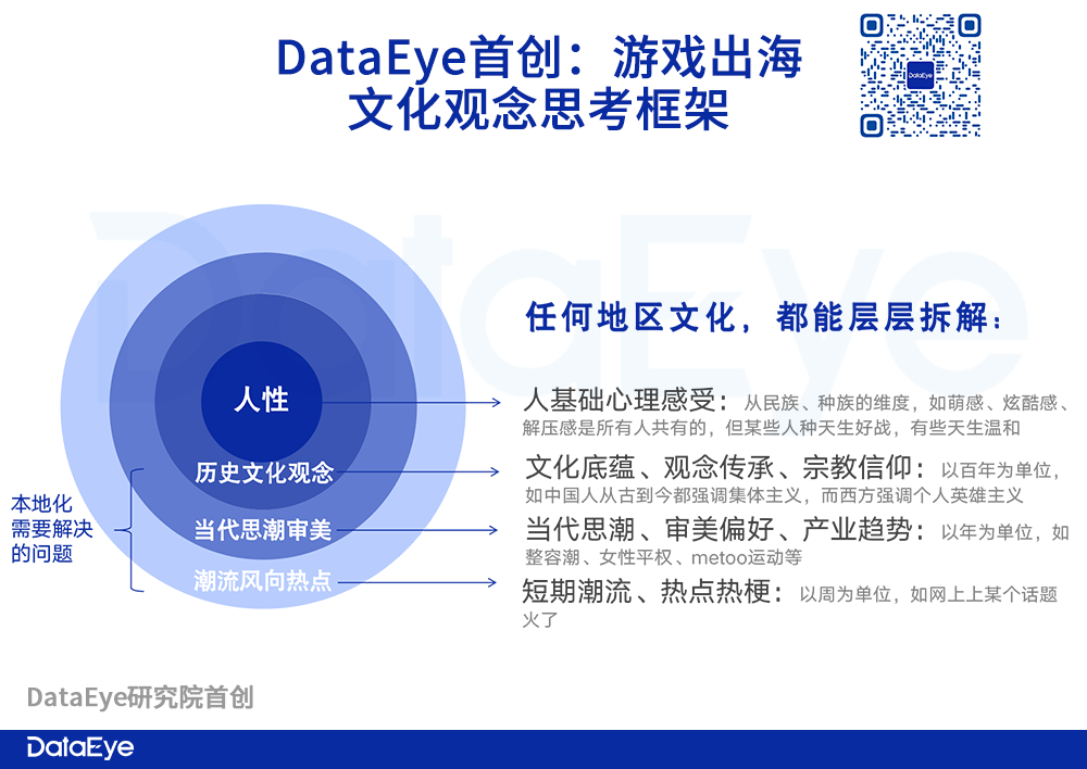 《游戏出海文化观念思考框架》是DataEye研究院结合理论研究及DataEye添羿的出海内容制作经验得出的结论。