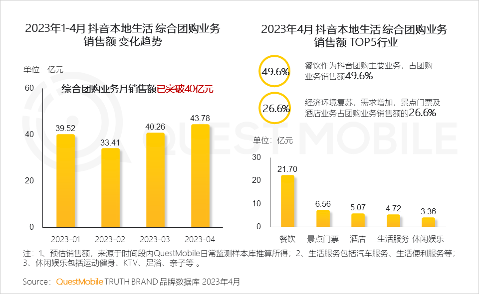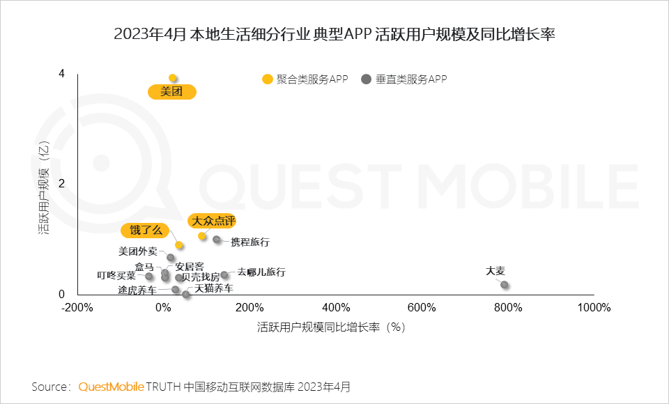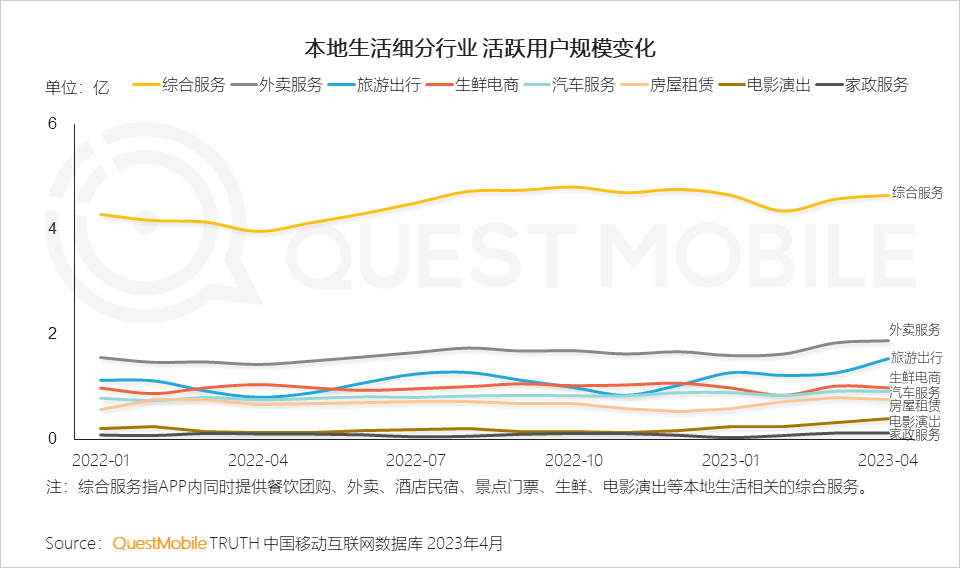 QuestMobile数据显示,2023年4月,本地生活综合服务行业全网渗透率38.4%,外卖服务渗透率15.6%。