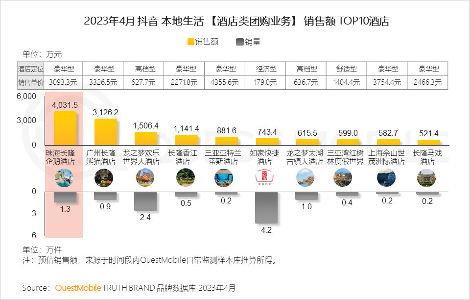7、不同于【餐饮类团购】业务,抖音为豪华酒店提供了一个全新的拓客渠道,主打亲子豪华酒店的珠海长隆企鹅酒店以3000元的客单价成为4月酒店团购业务“销冠”