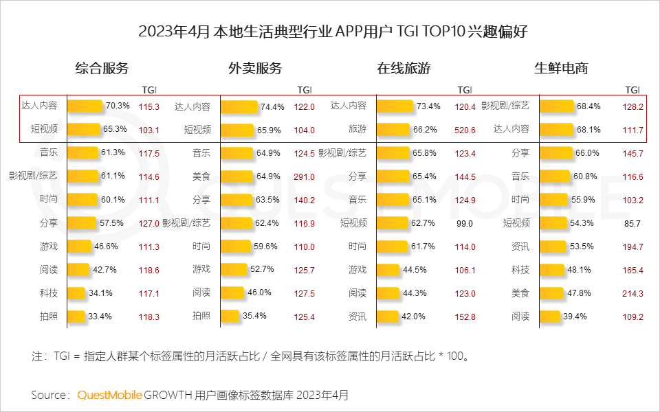5、此外,典型用户对达人内容、短视频、影视综的高度偏好,也为抖音跑通本地生活新模式提供了客观优势
