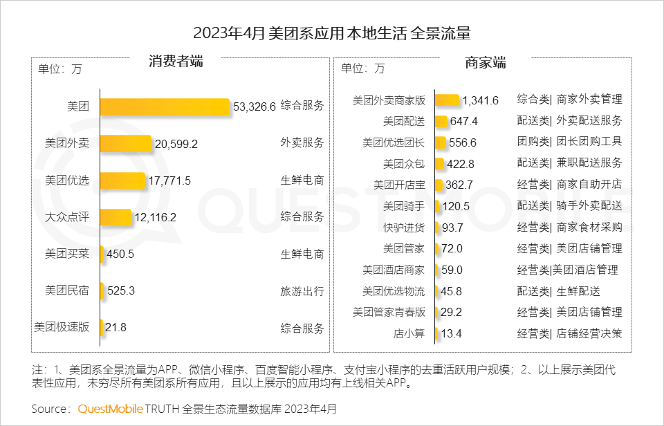 从消费者端布局来看,美团在精细化运营上早有动作,各细分板块均开设专有应用。
