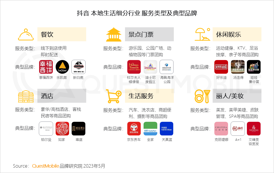 1、目前抖音本地生活覆盖多种细分领域,主要以用户到店消费模式为主;入驻商家集中在头部品牌