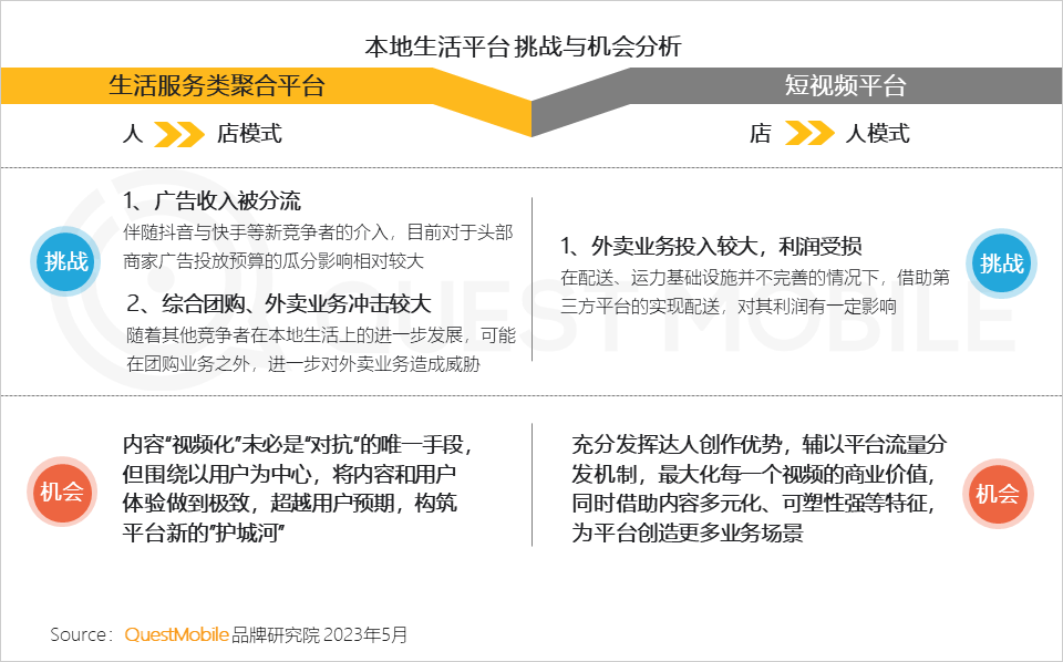 美团可通过对内容和用户体验做到极致为手段,构建起新的护城河,而抖音与快手这类短视频平台“不被定义”的内容优势,更有利于不同业务场景的探索和开拓。