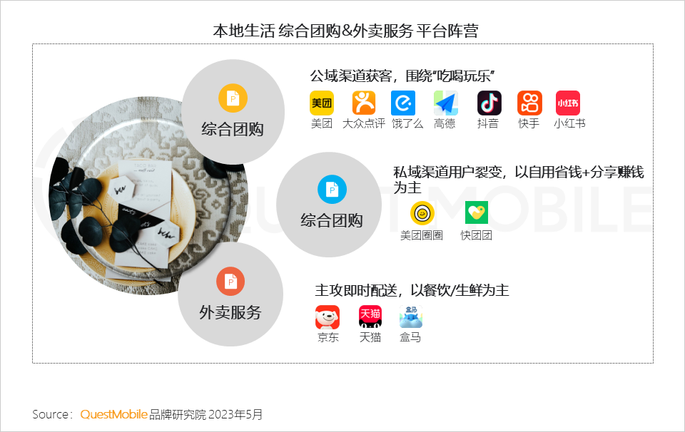 二、新晋玩家攻势迅猛,领跑巨头战略反攻,本地生活行业群雄环伺;综合团购板块成各平台鏖战主阵营