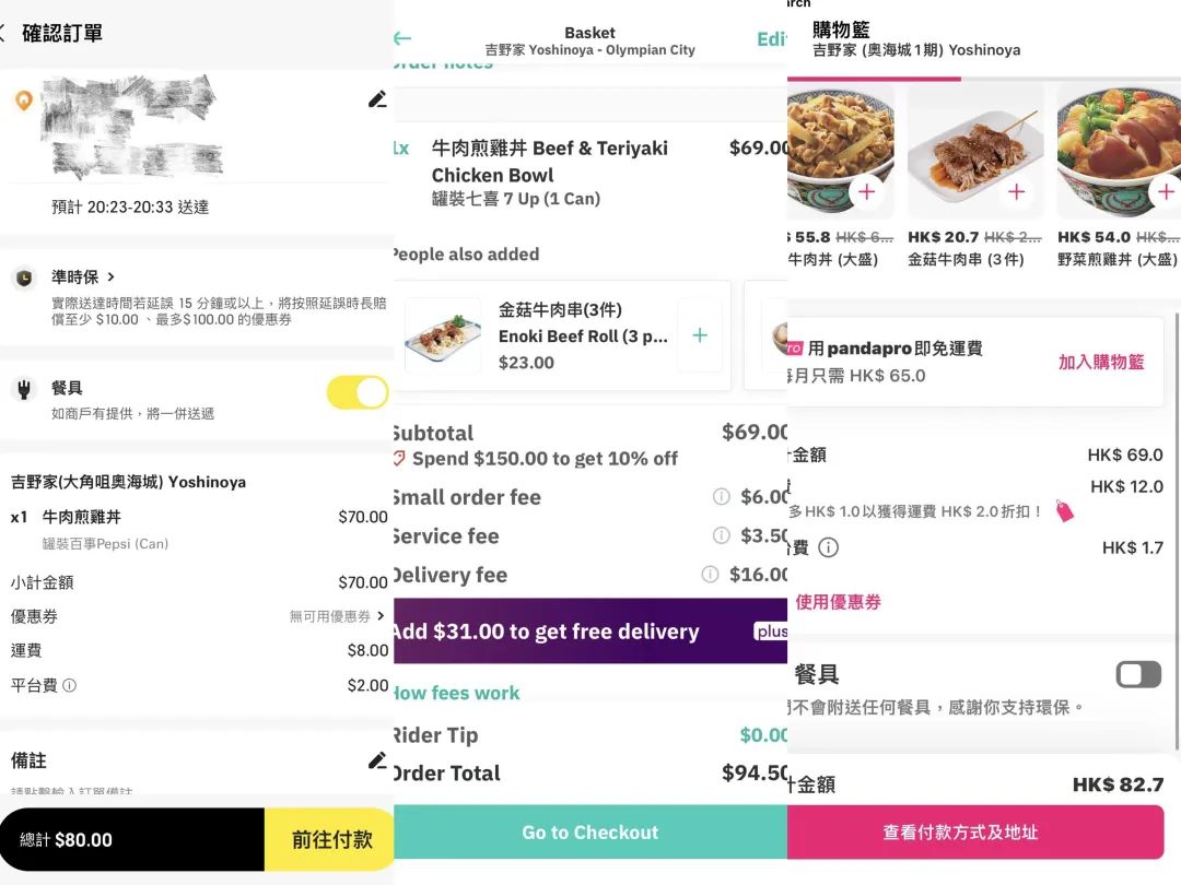 同时,若所点的商品不足起送费,香港地区的外卖平台一般是让用户补齐起送费。譬如所点餐饮商品售价为70港元,在结算时用户需要补齐余下的10港元以达到80港元起送的标准,才能完成消费,这便是所谓的“小型订单费用”。
