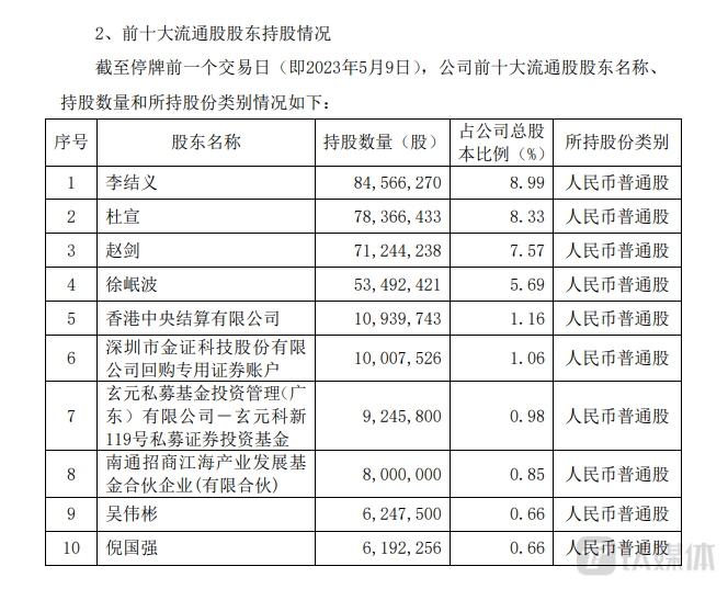 此外,一季报中的第五大股东广东恒阔投资管理有限公司和第六大股东深圳前海联礼阳投资有限责任公司,在5月9日的前十大股东名单中已经不见踪影。
