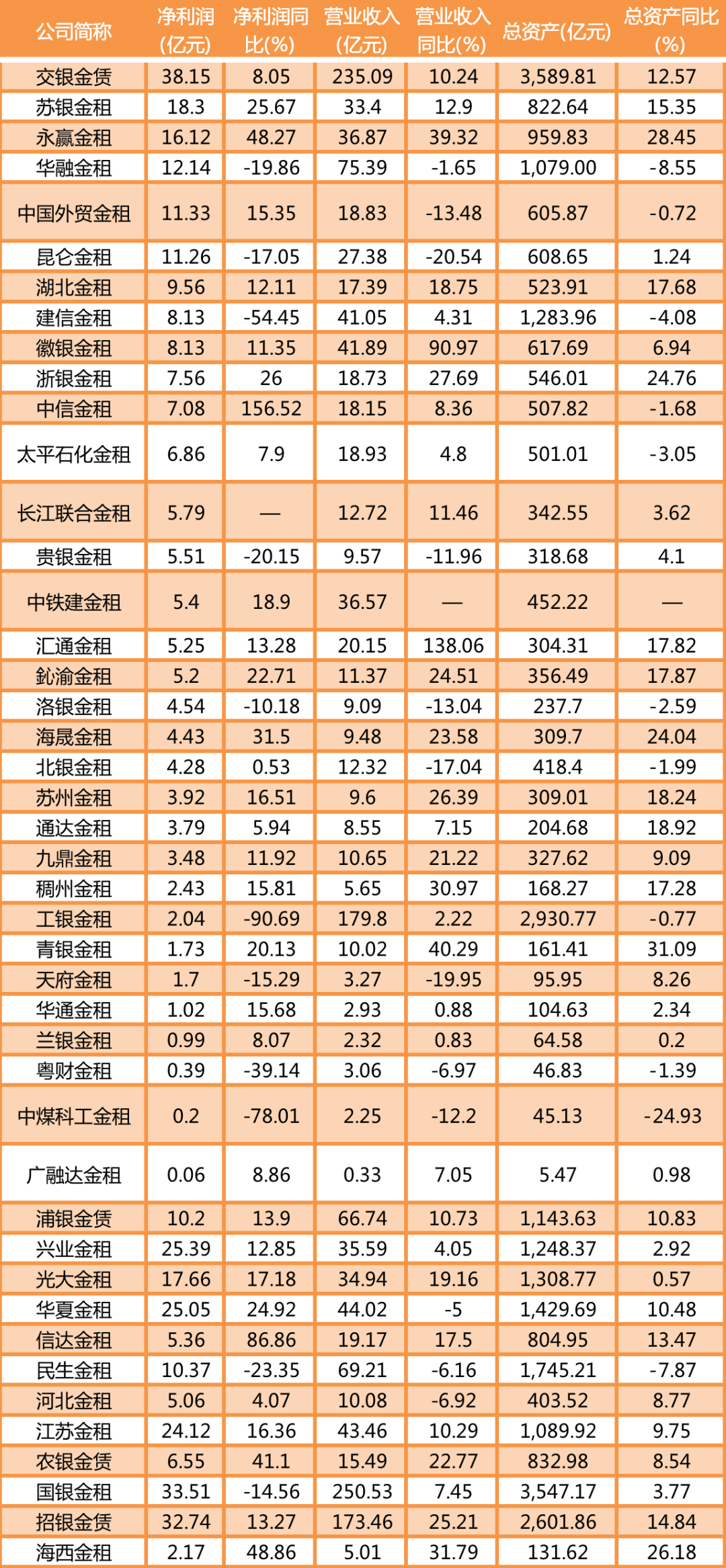 其中,信达金融租赁净利润为5.36亿元,同比增长86.86%;海西金融租赁净利润为2.17亿元,同比增长48.86%;永赢金租净利润为16.12亿元,同比增长48.27%等。