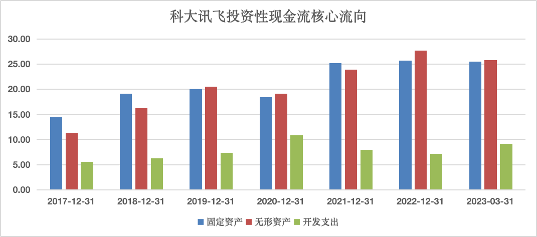 科大讯飞到底都投资了什么?总的来看有三大类:开发支出、无形资产、固定资产。