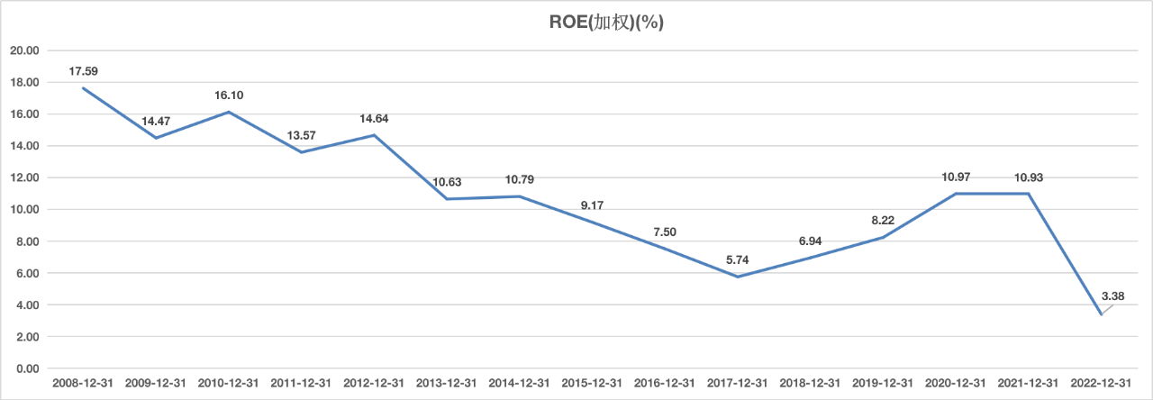回顾历史,科大讯飞除了2008年和2010年ROE超过15%,其他年份数值总体较低,而且总体呈下降趋势。2017年-2021年曾有反弹,但2022年直接跌至3.38%的历史低位。
