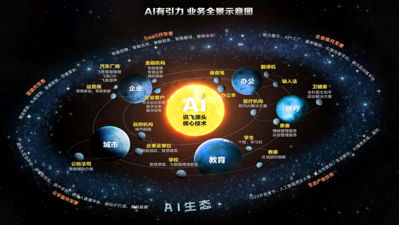 可能是科大讯飞自己也怕投资者一头雾水,特意在年报做了一张宇宙感十足的图,解释各业务逻辑关系。