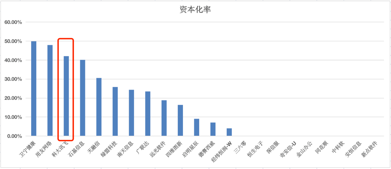 40%左右的研发金额资本化率到底高不高?根据《豹变》统计,科大讯飞在A股“申万软件开发板块”研发金额超过5亿的公司中,资本化率位列第三。可以看出,科大讯飞有较强的做高净利润的意愿。