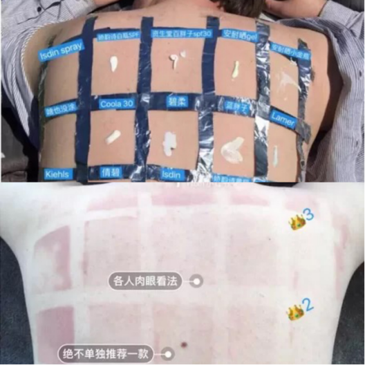 2018年,一位外国博主在背部进行多款防晒霜测试后发现,比起各种防晒霜,最能挡住紫外线的其实是胶带。