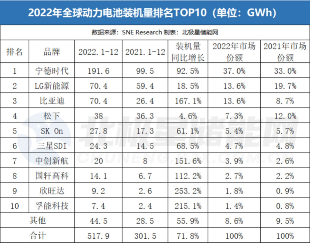 跟在宁德时代身后的就是比亚迪。