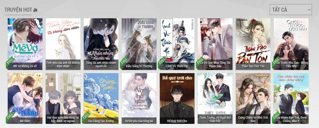 越南小说网站Truyện Full上的热门书籍榜单