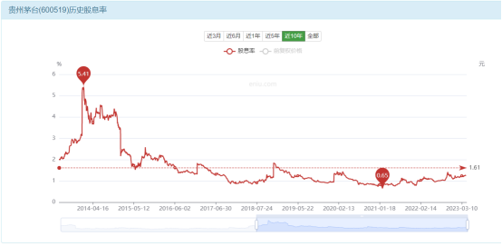 以茅台为例,它无疑符合“经营稳健、分红稳定”的标准,近10年股息率是1.61%,说明长期持有茅台的投资者,每年有超过1.6%的安全边际的收益。